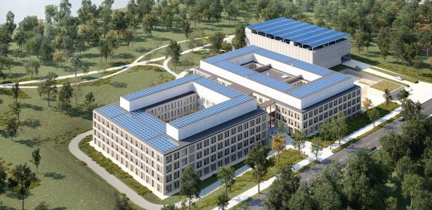 The hospital design is modular and highly flexible. Prefabricated sandwich panels, including insulation, windows and interior finishes, ensure the building is wind- and watertight immediately after the structural phase. This allows finishing work to start right away and makes future extensions or functional changes easy to implement. The fully electric facility incorporates solar energy, rainwater harvesting and underground energy storage, significantly reducing its ecological footprint. By strongly focusing on day hospitalisation and outpatient care, the hospital can operate with 100 fewer beds – without compromising the quality of care.